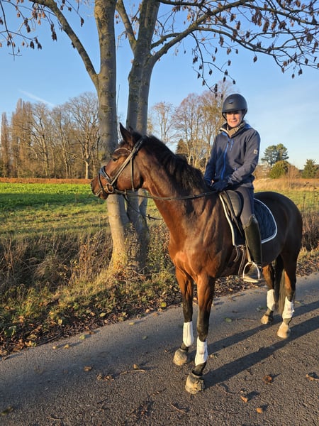 Zum Verkauf steht eine braune 6-jährige Hannoveraner Stute von Follow me x Sandro Hit. Fia Bella „Effi“ hat ein Stockmaß von 1,68 m, und ist für jeden Spaß zu haben. Sie fällt einem alleine schon aufgrund ihrer Schönheit ins Auge. Wir wünschen uns für sie einen absoluten Bestplatz, wo sie als vollwertiges Familienmitglied geschätzt und dementsprechend auch gut behandelt wird. Wir wünschen uns für sie ein Zuhause, in dem sie einem ambitionierten Freizeitreiter oder Anfänger Freude bereiten kann. Sie freut sich über Ausritte, egal ob alleine oder in der Gruppe. Ob Halle, Reitplatz oder Gelände, sie geht unerschrocken in allen drei GGA. Aufgrund ihrer guten Abstammung könnte ich sie mir ebenfalls für die Zucht vorstellen. Sie hat bereits 4-jährig ein Fohlen bekommen und war eine tolle Mutter. Das Aufnehmen und Abfohlen hat problemlos funktioniert. Ihre Stutenprüfung hat sie erfolgreich mit der Auszeichnung des A1-Preises absolviert. Sie ist im Umgang ein absoluter Schatz und völlig unkompliziert, genau wie beim Verladen. Effi ist regelmäßig entwurmt und geimpft. Sie ist sehr verträglich mit anderen Pferden, da sie eher Rang niedig ist. Röntgenbilder von 03/24 liegen vor. Da Effi koppt, wird sie weit unter Wert angeboten. Es ist kein Notverkauf! Video und weitere Infos bei ernsthaftem Interesse.