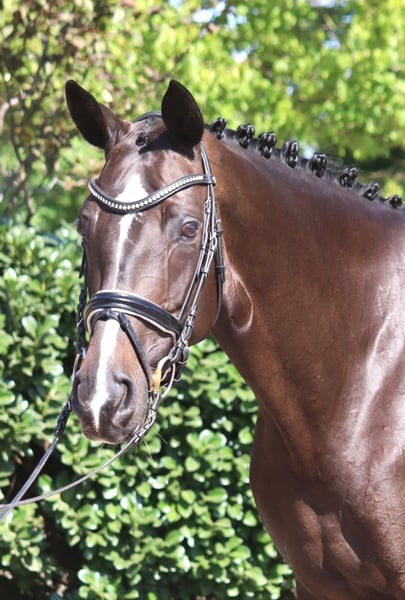 Sympathische 6 jährige Stute Bon Coeur x Hohenstein mit 3 sehr guten Grundgangarten und hervorragender Rittigkeit. Sie ist bereits auf Dressurpferde L Niveau zu reiten und konnte dieses bereits mit Platzierungen unter Beweis stellen. Ein absolut unkompliziertes Pferd, das in der täglichen Arbeit immer Spass macht. Preis zzgl. Mwst. Anfragen nur telefonisch, E-mails werden nicht beantwortet.
