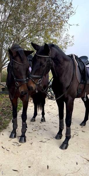Princesse Fiona - Une magnifique jument hanovrienne de 16,3 hh, âgée de 5 ans, à la recherche d’un nouveau foyer. Elle est une fille de Fürst Samarant/Dancier, née le 20/02/2020, en robe baie foncée, dans le même élevage depuis sa naissance, et a été monté et entraîné de manière professionnelle. Elle est incroyablement bien dressée et sans peur, tout en conservant suffisamment d’“énergie”. Très douce en main, pas du tout forte — plutôt sensible et raffinée. Elle connaît le travail en extérieur, en solo ou en compagnie, et reste très bien dressée. Elle apprécie également de sauter de petites barres en liberté. Elle se déplace en solo ou en groupe. Elle possède trois allures de base bonnes, un trot dynamique et élastique, ainsi qu’un grand galop en montée. La jument a été soigneusement montée et a été présentée en compétition en 2024, avec trois départs et trois victoires, dont une victoire en test de monte avec une note de 8,3. Elle peut déjà effectuer un contre-galop et est en voie d’atteindre le niveau Drpf. L, elle sera donc bientôt prête pour la saison (la prochaine compétition est prévue pour le 12/04). Elle a passé un examen vétérinaire complet à l’âge de 3 ans sans aucune anomalie. C’est une hanovrienne, enregistrée dans le stud-book hanovrien, et possède un passeport cheval hanovrien. Une maison où l’on aime les chevaux et qui offre un environnement soutenant est essentielle pour Princesse Fiona. Tout est visible et testable si vous pouvez vous déplacer à l’élevage. L’aéroport le plus proche est Zagreb. Les acheteurs potentiels doivent nous envoyer via WhatsApp une vidéo de leur niveau de monte pour évaluation (cliquer ici pour révéler le numéro de téléphone). Située dans le Nord de la Croatie, à 150 km de Graz. Expédition dans le monde entier possible, veuillez nous contacter pour un devis. Prix : 22 000 € ou environ 18 390 £ sterling au jour de la vente. Ref CMC