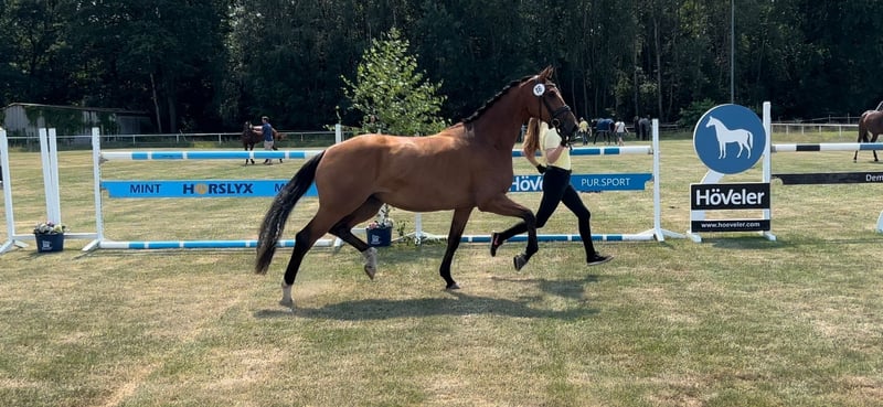 Zum Verkauf steht eine 6-jährige, ca. 172 cm große Hannoveraner Stute, Prämienanwärterin aus Fusionist x Don Marcello x Weltmeyer. Die Stute wurde altersgerecht und schonend ausgebildet und präsentierte sich 2024 auf der Herwart von der Decken-Schau in Verden. „First Temptation DB“ ist nicht nur sportlich, sondern auch züchterisch eine absolut interessante Wahl. Unter dem Sattel zeigt sie sich als vielseitig veranlagte Stute mit viel Vermögen, guter Übersicht und dem nötigen Go. Sie springt sowohl Parcours- als auch Geländehindernisse sicher und motiviert. Mit drei überdurchschnittlichen Grundgangarten überzeugt sie auf jeder Linie. Spielerische Wechsel sowie Traversalen sind bereits Bestandteil der täglichen Arbeit. Ein sportliches Nachwuchspferd, welches eine klare und fördernde Hand benötigt. Mit ehrlichem Charakter und viel Entwicklungspotenzial, ideal für sichere und ambitionierte Reiter im Vielseitigkeits-, Spring- oder Dressursport.