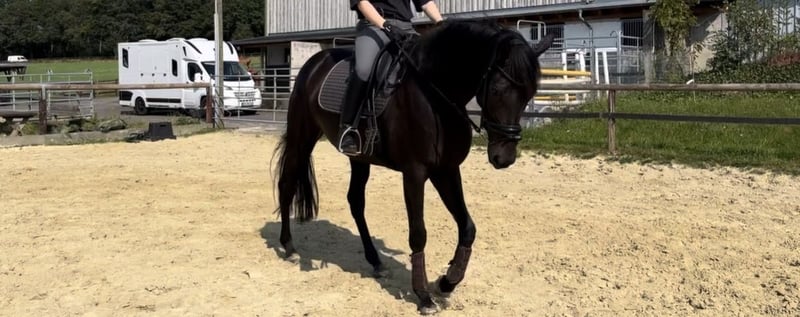 Schweren Herzens suchen wir für unsere 6-jährige Hannoveraner Rappstute „Maybe we Should“ ein passendes neues Zuhause. Die elegante Rappstute (ca. 1,70–1,72 m) stammt ab von Monterey aus einer St. Moritz Junior Mutter und bringt damit eine sehr interessante Dressurabstammung mit. Sie verfügt über drei sehr gute Grundgangarten, ist leicht an der Hand und war ursprünglich als mein nächstes Nachwuchspferd vorgesehen. Leider wurde bei ihr ein Spatbefund im linken Hinterbein diagnostiziert. Röntgenbilder sowie der Klinikbericht liegen vor. Aktuell ist sie lahmfrei. Im Umgang zeigt sie sich wach, sehr menschenbezogen und sie genießt die Aufmerksamkeit, die man ihr gibt. Sie hatte bereits ein Fohlen, welches aktuell noch bei uns steht. Kein Notverkauf und kein Händlerverkauf – wir möchten ein dauerhaftes Zuhause für sie finden. Weitere Bilder, Videos und Unterlagen gerne auf Anfrage.