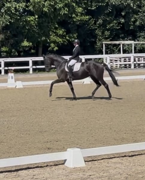Our "Franzi" is an elegant and modern mare with three excellent gaits, already placed multiple times and victorious in dressage horse competitions at classes A and L. She is on her way to class M. This 6-year-old, well-built mare impresses with her three very good gaits, her positive attitude, rideability, and outstanding willingness to perform. She has completed a solid basic training and shows great talent for further development. With her good pedigree and excellent character, she is an ideal partner for ambitious riders who value quality and performance. I am happy to provide videos and additional information by phone. Viewing and trial rides are available by appointment.