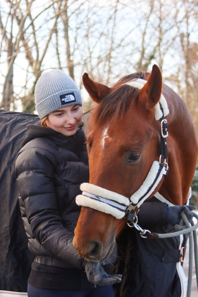 Zum Verkauf steht eine 2018 geborene, etwa 1.62 m große Dunkelfuchsstute. Die junge Dame besticht nicht nur mit ihrer wunderhübschen Aufmachung, sondern auch mit ihrem liebenswerten Charakter. Im Umgang ist sie absolut unkompliziert, lässt sich auch von Kindern problemlos händeln und liebt es, wenn ihr jemand Aufmerksamkeit schenkt. Auch unter dem Reiter lässt sie keine Wünsche offen, läuft brav in allen drei GGA, springt bereits Wechsel und wird derzeit von einer Jugendlichen geritten. Abstammend nach Quantensprung x Rohdiamant x Brentano II lässt auch ihr Pedigree keine Wünsche offen und ist demnach auch in der Zucht denkbar. In der Gruppe ist sie absolut verträglich und steht derzeit in einer Stutenherde. Natürlich kennt sie den Hufschmied (derzeit vorne beschlagen), den Tierarzt sowie das verladen und fahren. Wer auf der Suche nach einem idealen Jugend-, oder Damenpferd ist, wird in dieser sympathischen Stute bestimmt fündig!