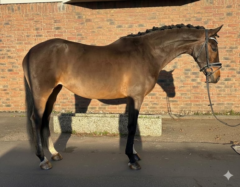 Typey mare with three very good basic gaits and excellent rideability. At five years old, she already won Dressage Horse A and has been placed multiple times in L. When she was about to be sold, she was diagnosed with spavin and two chips. Clinically, she has always been unremarkable. Since the owner was pregnant at the time, the mare was only lightly ridden for nearly a year, mainly for leisure. She is also familiar with pole work and hacking. Bavaria moves easily on the bit, is comfortable to sit, and has a pleasant go. She is now back in professional training, working on the movements of class M. Her full sister, who is one year older, is already successful at M level and placed in M**. Current X-ray images are available.