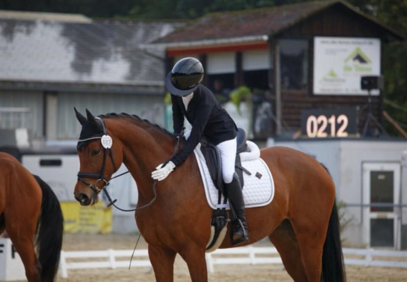 À vendre, une jolie jument baie dotée d’un excellent caractère et d’un grand cœur. Elle a brillamment passé son examen de performance pour juments et se montre à la fois calme et facile à monter, tant dans le comportement que sous la selle. Lors du quotidien, elle est toujours sage et facile à gérer — que ce soit lors du pansage, de l’habillage ou du ferrage. Elle se montre également fiable en extérieur. Sous la selle, elle travaille toujours avec motivation, est agréable à monter et réagit facilement aux aides. Elle a déjà été présentée avec succès en compétition par une jeune cavalière, en restant toujours sage et attentive à l’apprentissage. C’est donc le cheval idéal pour les amateurs, les cavaliers en reprise ou en transition, qui recherchent un cheval de loisir ou de compétition sûr, bien monté et fiable.