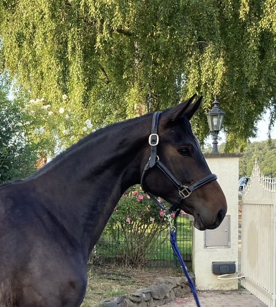 **Sales Advertisement: Dreamy Hanoverian Mare for Sale** For sale is a beautiful Hanoverian mare, born in 2019. This elegant dark bay lady stands at 164 cm and impresses with her appealing stature and harmonious appearance. The mare is well-suited for leisure riders with dressage ambitions and already shows promising progress in her training. She has good basic gaits and a pleasant temperament, and she is particularly well-behaved in the field, where one can already relax on a long rein at the beginning of her training. She is easy to handle, well-mannered, and has a friendly character. Additionally, she loads onto the trailer very calmly and loves to be bathed. This wonderful mare is now looking for a loving new home where her character will be appreciated. Flamenca was initially used as a broodmare and was therefore started under saddle later. If you are interested or would like more information, please feel free to contact me. Viewings are possible by appointment. Let yourself be enchanted by this wonderful mare!