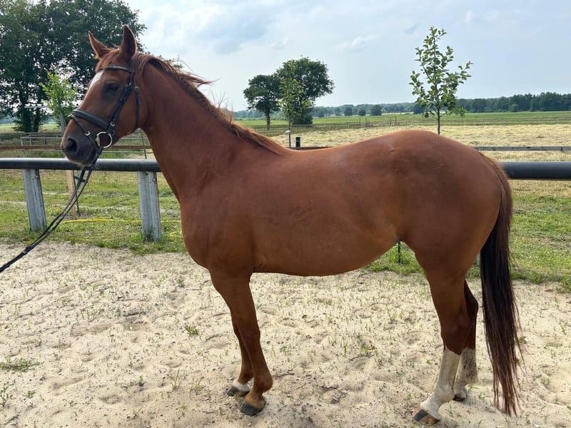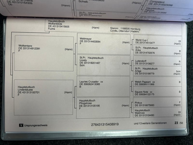 Zum Verkauf steht eine vielversprechende 6-jährige Hannoveraner Stute mit ausgezeichnetem Potenzial für Zucht und Sport. Eckdaten: Alter: 6 Jahre Größe: ca. 165 cm Ausbildung: gut angeritten, für alle Spaten geeignet Grundgangarten: Sehr gut ausgeprägt, mit besonders ausdrucksstarkem Trab und raumgreifendem Galopp Abstammung: Nechristo x Wolkentanz x Weltmeyer Charakter: Sehr menschenbezogen, nervenstark und lernwillig Dieses Pferd bringt alles mit, was man sich von einem modernen Sport- und Zuchtpferd wünscht: Bewegungsqualität, Exterieur und einen klaren Kopf.