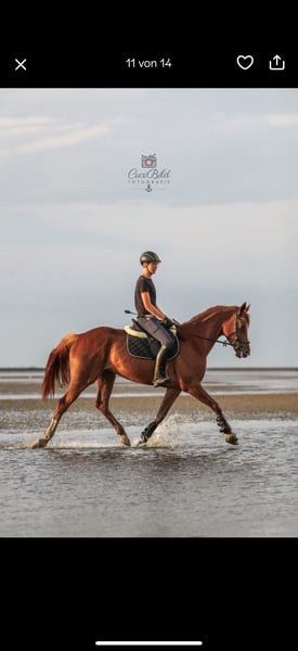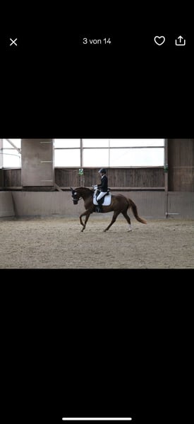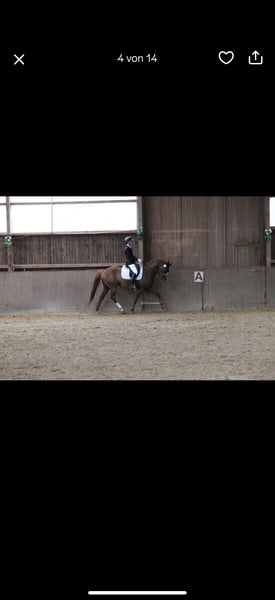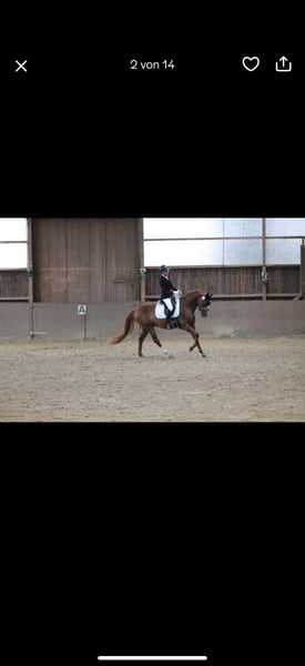 Schweren Herzens haben wir uns entschieden, unsere 7-jährige Hannoveraner Stute Flora (von Floris Prince x Locksley II) in ein 5*-Zuhause abzugeben.* Flora ist 1,66 m groß und bringt bereits zahlreiche Turniererfolge in der Dressur von E bis A** mit (u. a. Vorstellung in Dressurpferde L). Da sie am Springreiten wenig Freude hat, wird sie ausschließlich als Dressurpferd verkauft. Außengalopp und fliegende Wechsel beherrscht sie sicher, Geländesprünge nimmt sie souverän. Flora kann manchmal etwas „typisch Stute“ sein und braucht daher eine erfahrene, selbstbewusste Bezugsperson, die ihr Vertrauen und Sicherheit gibt. Für Kinder, Anfänger oder Wiedereinsteiger ist sie nicht geeignet. Als Ausgleich genießt sie entspannte Ausritte – sowohl in der Gruppe als auch alleine. Im Wasser zeigt sie sich absolut brav und trägt ihren Reiter stets zuverlässig. Beim Hufschmied und Tierarzt verhält sie sich vorbildlich. Verladen und Anhängerfahren sind problemlos möglich – ob alleine oder mit einem zweiten Pferd. Selbst wenn ein zweites Pferd abgeladen wird, bleibt Flora gelassen auf dem Anhänger stehen. Flora steht am liebsten viel draußen und fühlt sich in Offenstall- oder Paddockhaltung am wohlsten. Auf Staub reagiert sie empfindlich, daher sollte ihr Stall entsprechend angepasst sein. Flora wird ausschließlich in beste, erfahrene Hände abgegeben. Ein Verkauf an Händler oder Schulbetriebe kommt nicht infrage. Ich wünsche mir für sie ein Zuhause, das ihrer Qualität und ihrem Charakter gerecht wird – denn sie verdient nur das Beste. Wenn Flora dein/euer Interesse geweckt hat, freue ich mich über eine kurze Vorstellung von dir/euch, euren Vorstellungen und den Haltungsbedingungen. Videos können auf Anfrage gerne zugesandt werden. Bei weiteren Fragen gerne melden unter: +49 151 29538967