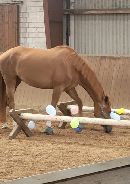 Verkaufe elegante Hannoveraner Stute – Dunkelfuchs, aus 2019 mit Traumcharakter! Ich habe selten ein Pferd erlebt, dass dem Menschen so zugewandt ist. Absolut klar im Handling, mutig, neugierig und zeigt Talent für die Freiheitsdressur. Wenn es mal eine Schrecksituation gibt, ist sie sofort wieder da und entspannt sich schnell. Dank der 3 hervorragenden GGA und der bestechenden Trabmechanik zieht sie alle Blicke auf sich. Ich gebe sie als nicht reitbar ab. Videos und alles Weitere gern auf Anfrage.