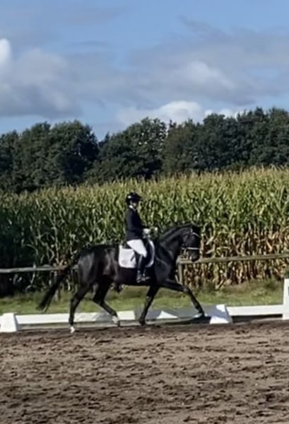 Deborah ist eine 5-jährige charmante Stute mit hervorragenden Grundgangarten und viel Potential. Sie stammt aus unserer eigenen Zucht, wurde behutsam angeritten und mit Bedacht ausgebildet, hat in ihrem Leben noch nichts schlechtes erlebt und folgt ihrem Reiter bereitwillig und voller Vertrauen. Sie wird drinnen, wie draußen gearbeitet, ist im Gelände gut zu reiten, konnte auf ihrem ersten Turnier im letzten Jahr auf Anhieb überzeugen und wurde Dressurpferde A platziert. Sie hat sich ohne Angst und Nervosität präsentiert, verladen verläuft problemlos. Dieses Jahr ist sie erfolgreich in die Saison gestartet, Dressurpferde A mit 8,5 gewonnen und A-Dressur souverän gewonnen. Röntgenaufnahmen vorhanden. Bei Interesse kontaktieren Sie mich gerne telefonisch oder über WhatsApp 0170-9316952