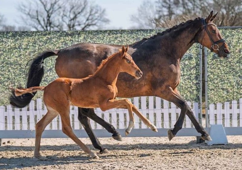 Met Belana presenteren we een volledig ongedwongen merrie. Van jongs af aan is ze mensgericht en daardoor is ze in het dagelijks leven eenvoudig in de omgang. In drie fokjaren heeft ze tot nu toe drie veulens gebracht en is ze voor 2025 drachtig van de premiumhengst en prijsrecordhouder St. Noblè (St. Schufro - Sir Donnerhall - For Compliment). Belana stamt af van de merrielijn Note. Vader Benetton Dream behoort tot de top van de Duitse dressuurpaardenfokkerij, zowel met eigen prestaties tot de zware klasse als met uitstekende nakomelingen. Uit de moederlijn Note komen de goedgekeurde hengsten Leibnitz, Gletscher, Goldpilz en ook Ricochet voort. De nakomelingen van deze merrielijn hebben meer dan € 400.000 gewonnen in springen en dressuur. Daaronder zijn de Weltmeyer-zoon Witiko (drie keer S-geplaatst), de goedgekeurde Prince T. xx-zoon Patrocolos (drie keer S-geplaatst) en zijn volle broer Prince Charming (drie keer S-overwinning). In de springsport heeft de Goldstrand-dochter Galina onder Holger Wulschner meerdere S-springen gewonnen en maar liefst 30 keer in S-springen gewonnen was de Leibwächter-dochter Liebelei. Video op aanvraag.