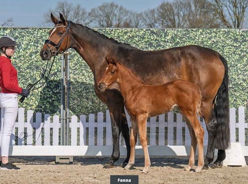 With Belana, a completely uncomplicated mare is presented. From birth, she has been very people-oriented and is easy to handle in daily routines. In three breeding years, she has produced three foals and is pregnant for 2025 by the premium stallion and record price winner St. Noblè (St. Schufro - Sir Donnerhall - For Compliment). Belana comes from the mare line Note. Her sire Benetton Dream is among the top of German dressage horse breeding, both with his own performance up to the advanced level and outstanding offspring. From the maternal line of Note, the licensed stallions Leibnitz, Gletscher, Goldpilz, and Ricochet are descended. The descendants of this mare line have won over €400,000 in show jumping and dressage. This includes the Weltmeyer son Witiko (placed in advanced level dressage), the licensed Prince T. xx son Patrocolos (placed in advanced level dressage), and his full brother Prince Charming (successful in advanced level dressage). In show jumping, the Goldstrand daughter Galina, under Holger Wulschner, has won several advanced level show jumping competitions, and the Leibwächter daughter Liebelei has been successful 30 times in advanced level show jumping. Video available upon request.