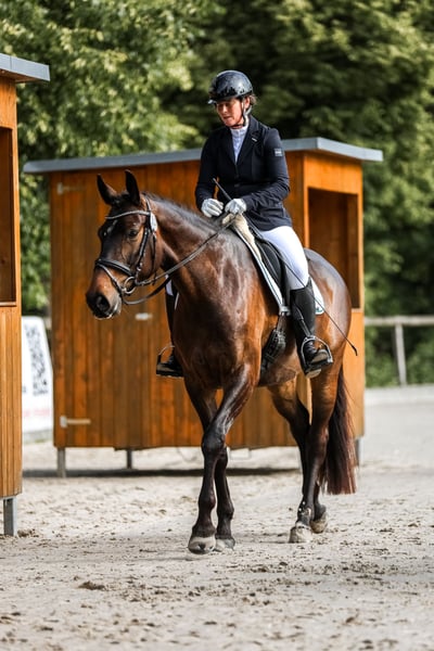 Offriamo la nostra eccezionale puledra di 6 anni, Exceptional, in vendita – un vero prodotto della nostra scuderia con ottime prospettive sportive e un importante background genealogico. Exceptional è alta circa 1,68 m, di colore baio scuro, elegante nell’aspetto e si muove con qualità eccezionale: il suo trotto è elastico e ritmato, il galoppo potente e ben equilibrato – movimenti che lasciano il segno anche in arena. In allenamento dall’inizio dell’anno, si presenta molto sciolta, desiderosa di imparare e con il giusto grado di sensibilità. Ha più volte ottenuto piazzamenti nelle prove di dressage di classe A, e la sua vittoria in una prova di livello superiore ne ha confermato la preparazione per la prossima categoria. Pedigree: Exceptional proviene dalla nostra linea di allevamento: il padre è Escamillo, stallone di grande richiesta a livello internazionale, anch’egli nato nella nostra scuderia, e la madre è una figlia di Destano. Questo le conferisce le migliori premesse genetiche per il dressage moderno. Ha già dimostrato il suo valore anche in ambito di allevamento. Dati principali: - Nome: Exceptional - Età: 6 anni - Altezza: circa 1,68 m - Colore: baio scuro - Livello di allenamento: L-Dressage - Pedigree: da Escamillo – Destano (entrambi i genitori di nostra produzione) Exceptional rappresenta un’opportunità speciale per cavalieri ambiziosi che desiderano portare in sport un giovane di qualità con prospettive future. Per interessati seriamente, saremo lieti di ricevere il vostro contatto. Ulteriori informazioni, foto e video sono disponibili su richiesta.