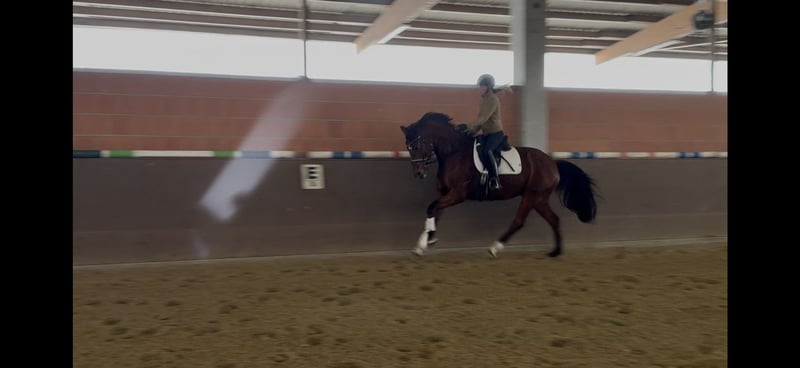 Zentina ist eine sehr hübsche und sympathische Stute die einfach jeden Tag Freude macht! Sie war 3 jährig kurz angeritten, hatte dann zwei bewegungsstarke Fohlen und wird jetzt gerade wieder antrainiert. Sie macht sehr gut mit und will immer gefallen. Ob unter dem Sattel, im Umgang, beim Verladen - sie ist einfach immer unkompliziert und ganz fein zu handeln. Aber auch für die Zucht ist sie interessant: Sie kommt aus einem sehr guten Stamm- ihre Mutter ist Vollschwester zu Nymphenburg’s First Ampere! Sie ist immer sofort tragend geworden und hat problemlos abgefohlt. Wer eine bezaubernde Stute sucht ist bei ihr genau richtig!! Bei Interesse gerne einfach anrufen oder per WhatsApp schreiben unter 0172-2942839