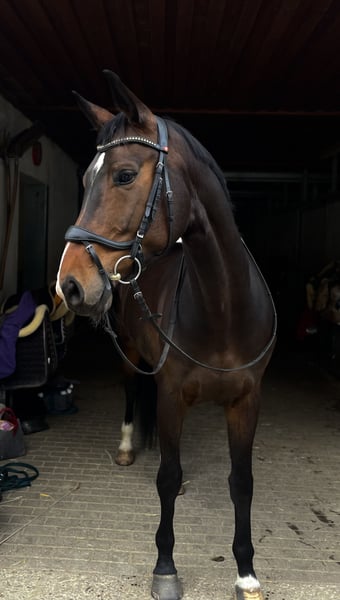 Ferrera ist eine 7 jährige Stute vom Bewegungsvererber Foundation aus einer Royal Classic x Sandro Hit Mutter. Sie ist ein unwahrscheinliches Kraftpaket und besticht durch ihre 3 hervorragenden Grundgangarten, welche immer im Takt und mit viel Raumgriff ausgestattet sind - ein echter Hingucker! Ferrera wurde aufgrund ihrer Größe recht spät angeritten und befindet sich derzeit auf einem soliden A Niveau auf dem Weg zur Klasse L. Letztes Jahr ging sie eine Dressurpferde A und war direkt 3. Platz. Hier war sie äußerst anständig und brav. Sie ist ein echter Rohdiamant, der mit dem richtigen Reiter im Viereck mit Sicherheit sehr weit kommen kann. Ferrera sucht sich ihren Reiter jedoch selbst aus: Sie ist sehr sensibel und kommt mit nervösen, hippeligen oder klemmigen Reitern nicht zurecht. Bei ausreichend erfahrenen Reitern die ihr mit ausreichend Autorität, Ruhe, Konsequenz und Feingefühl begegnen, läuft sie tadellos und bereitet wirklich große Freude und wartet darauf gefordert zu werden. Es braucht einen Reiter der versteht, dass wenn das Bein aufgeht, das Pferd nach vorne geht und nicht mit Druck versucht das Pferd in Gang zu bringen. Ansonsten macht sie auch mal einen Sprung und ist im Gelände super unerschrocken und cool. Sie ist Schmiede- und verladefromm und herdenverträglich. Röntgenbilder liegen vor inkl. Rücken. Alles in Ordnung bis auf ein Überbein am Vorderbein, was sie nun seit einem Jahr ohne Beeinträchtigung hat. Regelmäßig geimpft und entwurmt. Ferrera geht nur an einen Bestplatz.