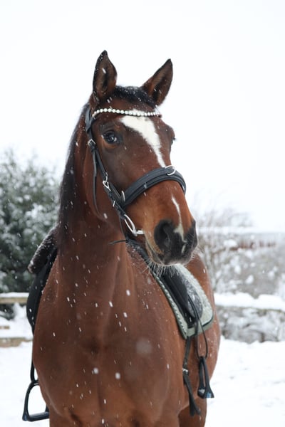 With a heavy heart, I am seeking a new, suitable home for my mare Lissi. I have had her for nearly four years, and we were a good team for a long time. However, after a fall a few weeks ago, we are no longer able to connect properly, which is why I have decided to take this step. About 1.5 years ago, Lissi suffered a suspensory ligament injury and was rested for a year. Since last summer, she has been back in training and is moving well again. Due to the long break, her current training level is roughly that of a four-year-old horse. She requires further development and a confident, experienced handler who can continue her education safely. She is definitely not suitable for a beginner rider, but rather for a assertive yet friendly rider with experience. Lissi has some hind limb lameness due to a slight overreach. This should be taken into account during her further training and workload (meaning no jumping). However, with appropriate training and management, this currently does not restrict her daily handling. Lissi has great potential and, under the right rider, will surely show her strengths again. I wish for her a home where she is understood, supported, and appreciated. Priority for placement over price – she will only be placed in the best hands. 💛