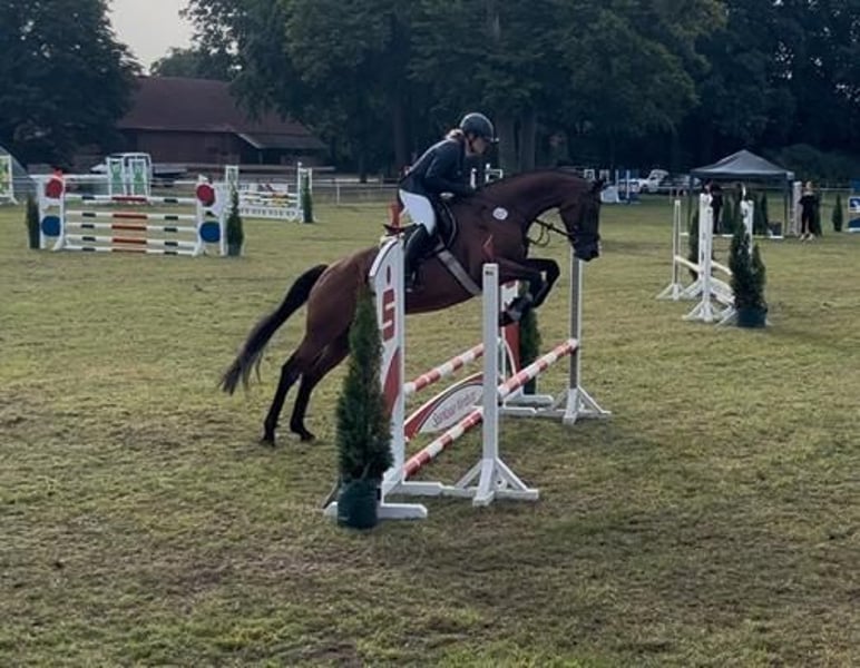 Zum Verkauf steht unsere 6jährige Hannoveraner Stute Carlotta von Casallco x Valentino. Im Frühjahr 24 schonend angeritten, zeigte sie sich von Anfang an ausgesprochen lernwillig und mit viel Freude an der Arbeit. Ausgestattet mit 3 sehr guten Grundgangarten und dem nötigen Go bringt sie sowohl für die Dressurarbeit als auch für den Springsport viel Potenzial mit. Am Sprung ist sie unerschrocken und motiviert. Auch auf ihren ersten Tunieren diesen Sommer zeigte sie sich sehr brav und schon recht abgeklärt. Wir wünschen uns für sie eine/n Reiter/in der/die sie weiter fördert und ihr ermöglicht, ihr sportliches Potenzial auszuschöpfen. Aufgrund ihres Alters und Ausbildungsstandes wird sie nur in erfahrene Hände verkauft. Wir verkaufen sie unter Wert, weil sie leider ein gesundheitliches Defizit hat, das sie aber bei entsprechender Haltung in ihrer Leistungsfähigkeit nicht einschränkt. Genaueres bei persönlicher Anfrage und ernsthaftem Interesse.