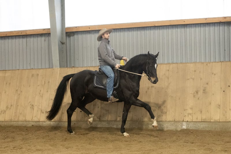 Due to changing personal circumstances, I am seeking a new home for my 8-year-old mare Pummelfee (Fürstenball x Sir Donnerhall I). She stands approximately 1.64 meters at the withers and has a delicate build, yet she is very confident and assertive. She is barefoot and her teeth were last checked in 2025. She has been regularly vaccinated, dewormed, and was examined by an osteopath in autumn. X-rays from June 2025 are available. The mare was backed at age four, was under saddle for half a year, completed her mare performance test, and was then not further promoted by her previous owner. Last year, she was introduced to ground and free work, which she approaches very enthusiastically. Since mid-December, Pummelfee has been ridden again. She demonstrates three very good gaits, with her springy trot particularly standing out. Due to her aptitude and pedigree, she is well-suited as a dressage horse. I am looking for a sensitive, confident rider who enjoys training their horse independently. The mare is accustomed to box stall housing with daily turnout in a paddock and open stable management. I wish for her to find a home where she is actively and diversely supported, where free and ground work are familiar, and where daily contact with conspecifics is natural, just like turnout on pasture in summer. Further questions will only be answered by phone. If genuinely interested, I am happy to send videos in advance. A trial ride can be arranged by appointment, for which a fee of 25 euros will be charged to prevent ride tourism.