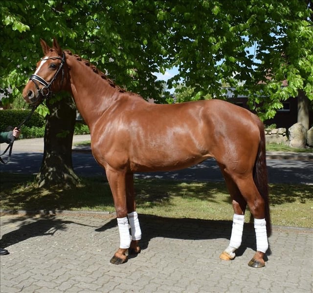 Hübsche Stute, die sich unkompliziert und gelassen präsentiert. Sie ist sehr brav zu reiten und kennt auch Gelände. Dazu ist sie nervenstark und von jedermann zu reiten. Mit ihrer edlen Erscheinung und Bewegungungen in guter Qualität ist sie ein echter Hingucker im Viereck. Ein Pferd zum Losreiten und Schleifen sammeln! Mehr Infos finden Sie auf unserer Homepage. Probereiten jederzeit nach Absprache möglich.