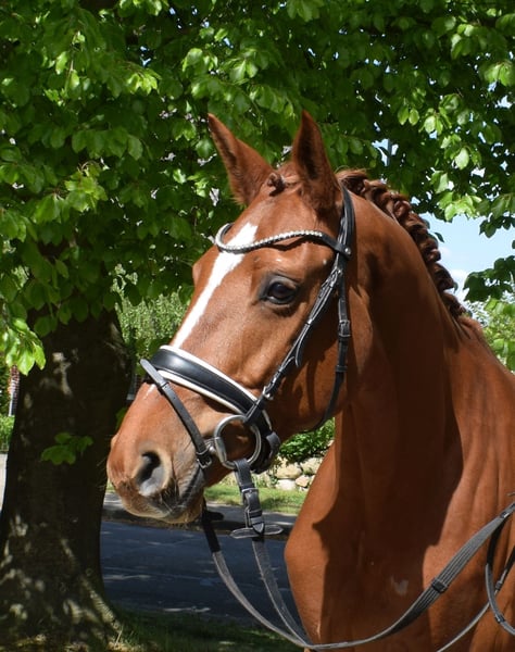 Hübsche Stute, die sich unkompliziert und gelassen präsentiert. Sie ist sehr brav zu reiten und kennt auch Gelände. Dazu ist sie nervenstark und von jedermann zu reiten. Mehr Infos finden Sie auf unserer Homepage. Probereiten jederzeit nach Absprache möglich.