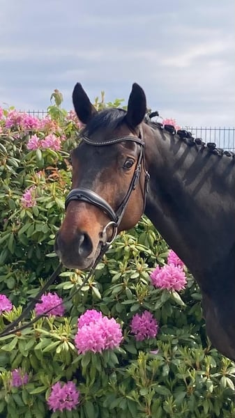 Diese großrahmige und bewegungsstarke Hannoveranerstute von Londontime - Samba Hit III überzeugt durch ihre sehr guten Grundgangarten, angenehme Rittigkeit und Präsenz. Die Stute ist leichtrittig, sitzbequem und zeigt unter dem Sattel eine gute Bereitschaft zur Mitarbeit. Sie ist sehr personenbezogen und sucht eine konstante Bezugsperson, weshalb sie sich nicht als klassisches Familienpferd eignet. In der Arbeit präsentiert sie sich sicher auf A-Niveau und hat mit weiterem gezieltem Training Potenzial für mehr. Mit einem Stockmaß von ca. 1,70 m deckt sie auch größere Reiter gut ab. Sie kennt Herdenhaltung und Führmaschine, läuft ohne Probleme barfuß und zeigt sich im täglichen Umgang sehr verschmust. Für ihre weitere Entwicklung wünsche ich mir jemanden, der Freude an diesem sportlichen Pferd hat und sie weiter fördert. Weitere Informationen werden auf Anfrage gern zur Verfügung gestellt.