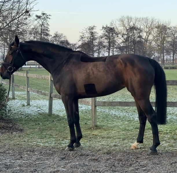 This Hanoverian mare was foaled in 2018 and has been in our hands since it was backed. Thanks to the combination of the powerful jumping genetics of Diacontinus on the sire's side and Forsyth on the dam's side, she possesses the natural talent and scope necessary for show jumping at a high level. During her training over the past years, we have personally introduced her and she has achieved placings and wins in show jumping competitions. In the last competition season, she competed successfully up to class S (1.40 m). The Hanoverian is very straightforward and a loyal partner in everyday handling. From grooming, brushing, and hoof care to tacking up and bridling, she is an absolute role model. Raised and trained in a family environment, she is accustomed to handling by children, dogs, and farm machinery. She is also very easy to load onto trailers and transporters, including horseboxes and Sprinters. Her basic gaits are very good, providing a solid foundation for daily dressage work and fun. Due to her perfect size, she also makes an excellent riding horse for both female and male riders. Currently, she is being further trained in dressage and jumping by a young girl and a woman. She is always motivated when ridden and in the arena, showing a brave temperament and strong willingness to work. With her attractive appearance, she is a real eye-catcher and a wonderful sport partner with great potential. As we have a large number of young horses, we are offering her for sale due to lack of time. X-ray examinations show no findings.