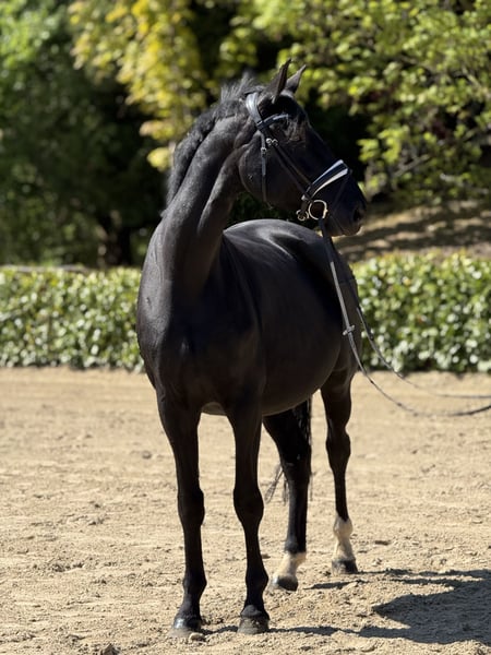 Zum Verkauf steht unsere ca. 175 cm große, 8‑jährige Hannoveraner Rappstute „Scarlet Witch“ Abstammung: Blue Hors St. Schufro x Rotspon 👉 Pedigree: https://www\.horsetelex\.de/horses/pedigree/2078013/scarlet-witch Aus ihrer Mutter Rotissima stammen u. a. die gekörten und bis Grand Prix erfolgreichen Hengste San Gennaro (2009 v. San Remo) und Quaterbac (2010 v. Quaterback). Scarlet ist seit ihrem 4. Lebensjahr in unserem Besitz und ist Dressurpferdeprüfung Kl. A platziert. Leider verletzte sie sich Ende 5‑jährig und musste in der Tierklinik Hochmoor an beiden Hinterbeinen operiert werden. Mit 6 Jahren wurde sie von VJENTO (Valdiviani x Sir Donnerhall I – Station Schult, Hünxe) belegt und brachte im letzten Jahr ein gesundes Hengstfohlen (Rappe) zur Welt. ➡️ Aktuell ist Scarlet erneut tragend von VJENTO und erwartet ihr Fohlen Ende Juni 2026. Aufgrund der Vorerkrankung wird Scarlet ausschließlich als Zuchtstute, sowie als Beistellpferd oder Freizeitpferd für gelegentliche leichte Arbeit und entspannte Ausritte verkauft. Der Verkauf erfolgt ausschließlich aus familiären Gründen, da sich unsere Tochter wieder dem Springsport zugewandt hat. Fotos und Videos (ohne Reiter) sind vom 23.04.2026. Bei ernsthaftem Interesse freuen wir uns über eine Kontaktaufnahme.
