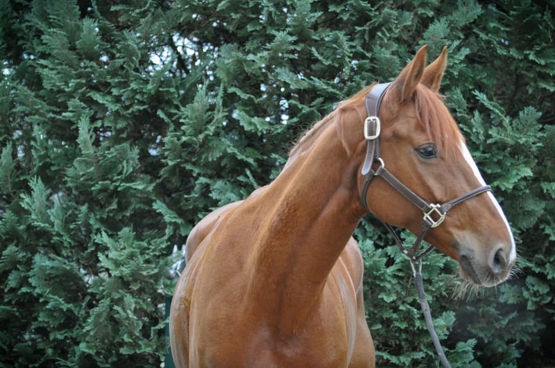 Beautiful 8-year-old chestnut mare by Stolzenberg x Acord II – Heart, quality, and sporting potential For sale is an impressive eight-year-old chestnut mare with excellent bloodlines (Stolzenberg x Akkord), already successfully competing up to 1.25 m. She possesses natural talent for jumping and impresses with her overview, ambition, and very pleasant rideability, making her a fantastic partner for sport. Her loving, human-oriented character is particularly noteworthy. This mare always aims to please her rider and proves to be reliable both in everyday handling and in training. She is attentive yet uncomplicated, consistently providing a confident and harmonious riding experience. Her manners are exemplary: perfectly calm when loading, easy to handle at the blacksmith, and overall exceptionally friendly and straightforward in daily handling. With a good veterinary report and a positive overall package of quality, attitude, and charm, this mare offers an excellent opportunity for those seeking a talented yet character-strong horse that excites both in sport and daily companionship. A rare chance to acquire a true heart horse with great future potential.