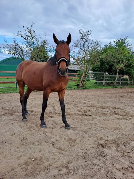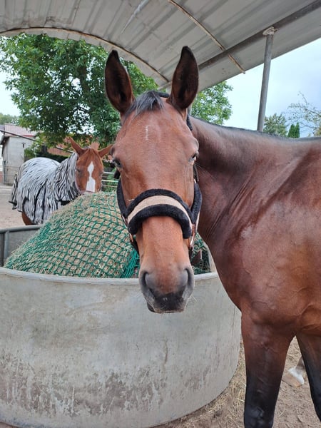 Allis jest ładną, przyjazną dla ludzi klaczą, która na co dzień okazuje dużą czułość i przywiązanie. Jest bardzo uważna, reaguje wrażliwie na otoczenie i potrzebuje doświadczonego opiekuna, który zapewni jej poczucie bezpieczeństwa. Zna pracę na lonży i chętnie się w nią angażuje. Pod siodłem wykazuje dużo temperamentu. Według poprzedniego właściciela, była jeżdżona sportowo, także w skokach, choć tego u nas nie testowaliśmy. Dotychczas u nas nie jeździliśmy na niej, ponieważ obecnie jest jeszcze zbyt niepewna. Zakupiona jako koń dla początkujących, jednak wydaje się, że nie jest to jej mocna strona. Wykazuje się większą temperamentnością i niepewnością niż podczas jazdy próbnej. Z dalszym rozbudowaniem mięśni oraz cierpliwym, konsekwentnym szkoleniem ma potencjał, aby ponownie stać się niezawodnym koniem sportowym. Jako klacz hodowlana posiada interesujące linie rodowodowe. Może także służyć jako koń towarzyszący z możliwością późniejszej jazdy. Allis jest zdrowa i przebadana medycznie. Ma nieco strome ściany kopytowe na jednym kopycie, co jest już leczone przez kowala. Podczas podnoszenia przedniego lewego kopyta odczuwa jeszcze dyskomfort, pozostałe kopyta poddaje się bez problemu. Zna stajnię otwartą, pastwisko, padok oraz nocowanie w boksie. Zapraszamy do kontaktu, aby ją poznać. Miejsce na pierwszym miejscu, cena do negocjacji. Wideo wkrótce.