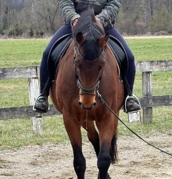 Aufgrund von Zeitmangel verkaufe ich meine 9 jährige, sehr unverbrauchte Hannoveraner-Stute Fryda. Sie ist hochinteressant für die Zucht, aufgrund des Pedigrees (Fürst Wettin × Jazz) und ihrer schwungvollen, ausdrucksstarken GGA. 6 jährig hatte sie bereits ein Fohlen und war dabei sehr unkompliziert. Fryda wurde auch geritten, bei ihrer Züchterin in D (vor ihrem Fohlen), bei mir dann aufgrund meiner Schwangerschaft länger nicht und gerade beginne ich wieder zu reiten. Dabei zeigt sie sich recht unerfahren und vorsichtig, aber sehr motiviert. Wenn sie nicht zur Zucht eingesetzt wird, sollte ihr Reiter sehr ruhig in der Hand und im Bein sein, und Fryda die Sicherheit geben, die sie noch nicht hat. Im Umgang ist sie ein Schatz, kennt alles was am Hof zu finden ist. In der Herde eher rangniedrig, Box und Offenstall gewohnt. Krank war sie nie, schmiede- und verladefromm, Stockmaß 164cm Eine tolle Zuchtstute, Ein werdender Star im großen Viereck, Oder sogar für die Vielseitigkeit?! Deutlich unter Wert zu verkaufen, da Platz vor Preis! Mehr Infos & Videos auf Anfrage