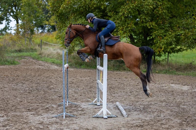 Zum Verkauf steht eine charmante, 163 cm große, 9-jährige Stute (2016), abstammend von Stolzenberg x Salito. Sie ist bereits bis M - Springen auf dem Turnier vorgestellt. Sie überzeugt mit ihrer ehrlichen Art und Übersicht am Sprung. Im täglichen Umgang zeigt sie sich super brav – ob beim Putzen, Führen oder Verladen. Auch im Gelände ist sie zuverlässig und unkompliziert. Unter dem Sattel benötigt sie einen souveränen Reiter. Videos vorhanden. Probereiten gegen Gebühr von 35 €. Bitte nur telefonische Anfragen oder Anfragen per WhatsApp +49 170 1925001.