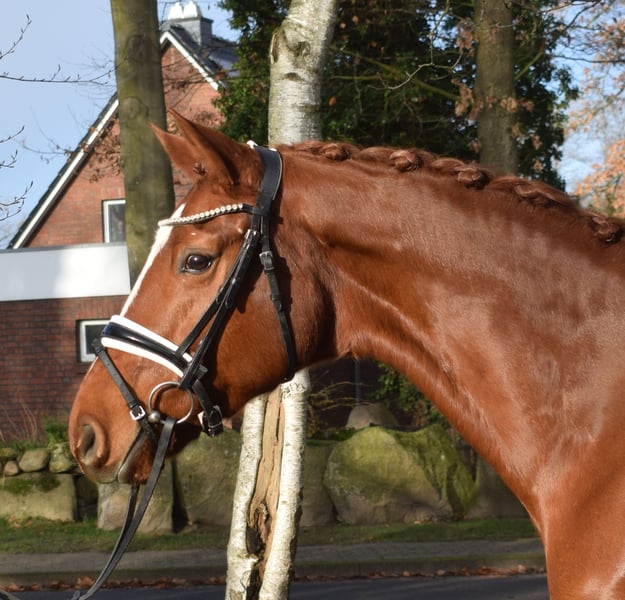 Hübsche Stute, die sich unkompliziert und gelassen präsentiert. Sie ist sehr brav zu reiten und kennt auch Gelände. Dazu ist sie nervenstark und von jedermann zu reiten. Mit ihrer edlen Erscheinung und Bewegungungen in guter Qualität ist sie ein echter Hingucker im Viereck. Ein Pferd zum Losreiten und Schleifen sammeln! Mehr Infos finden Sie auf unserer Homepage. Probereiten jederzeit nach Absprache möglich.