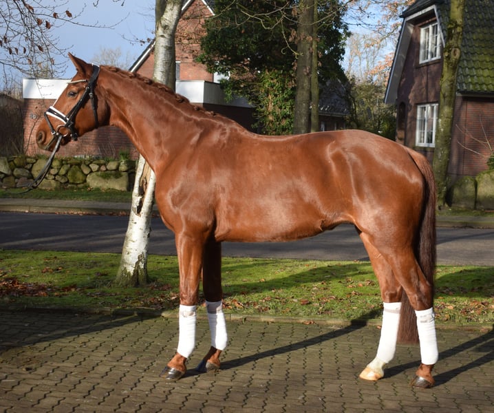 Beautiful mare that presents herself as uncomplicated and calm. She is very well-behaved under saddle and is also experienced in the terrain. Additionally, she is steady-minded and suitable for riders of all levels. With her noble appearance and high-quality movements, she is a real eye-catcher in the dressage ring. A horse to start riding and accumulate experience! For more information, please visit our website. Trial rides are available at any time by appointment.
