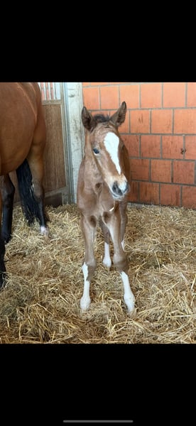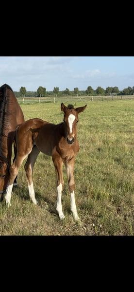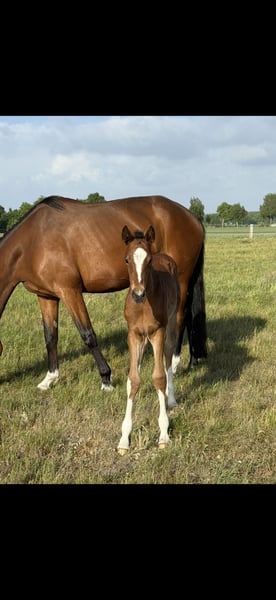 Eye-catching filly with expressive movements is still looking for a loving home. She is growing up in a species-appropriate herd environment, is very sociable and halter-trained, as well as farrier- and loading-friendly. Anyone looking for a friendly partner for the future will find the right match with her. She comes from a very good maternal line, which also makes her interesting for breeding. If interested, please feel free to contact us by phone or via WhatsApp at 0172-2942839.