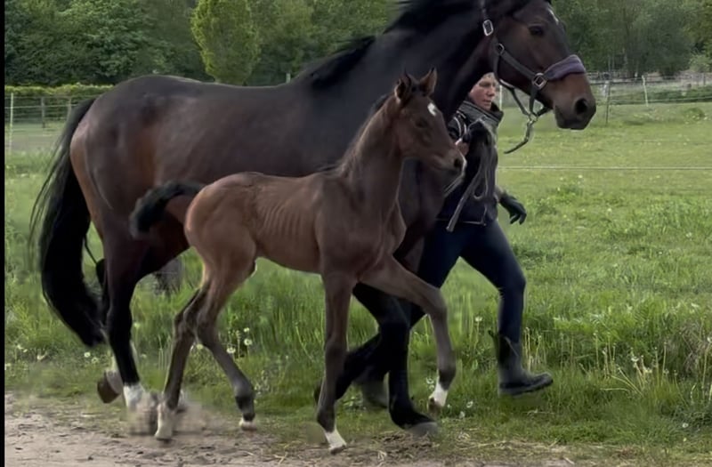 This beautiful filly with very good movements is looking for a new home due to the discontinuation of the operation. Her mother is also very athletic and passes this trait on to her foals - a half-brother to the foal is currently being prepared for the licensing. The foal is growing up in a species-appropriate manner in a herd with other mares and foals and is regularly presented to the farrier and provided with minerals. If interested, please feel free to call or contact via WhatsApp at 0172-2942839.