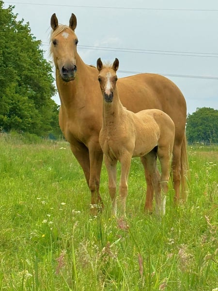 Filly by Shu Fu out of a Quaside x Don Juan de Hus mare – born March 2025 This exceptionally typey filly combines cutting-edge dressage genetics, powerful movement mechanics, and captivating charm. She already presents herself as a future top-class sport or breeding prospect. An outstanding pedigree that leaves nothing to be desired - Sire Shu Fu: celebrated rising star and highly interesting sire of modern riding qualities, with brilliant mechanics, rhythm, and natural self-carriage. - Dam line Quaside x Don Juan de Hus: performance-oriented, dynamic, and renowned for rideability, type, and a highly elastic hind leg. Qualities - Movement: uphill, energetic hind leg, ample shoulder freedom, always in natural self-carriage. - Character: alert, clear-minded, human-oriented, and absolutely pleasant in daily handling. - Conformation: modern, correct foundation, harmoniously built, and noble in expression. Important: This is not an emergency sale and definitely not a bargain. The quality of this foal speaks for itself – it will only be sold into suitable, nurturing hands. The foal is raised appropriately in a herd, familiar with foal basics, halter, and farrier. Viewing by appointment. More videos and photos available upon request.