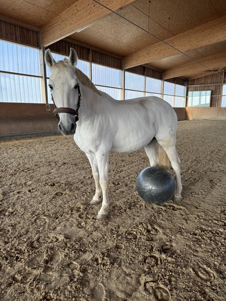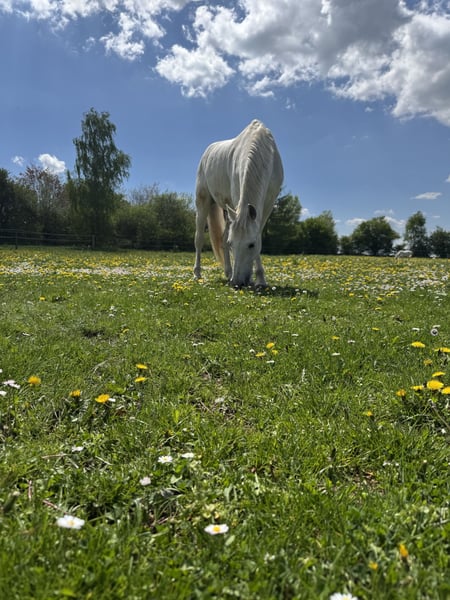 Regaliz ist ein 14 jähriger Wallach der vor 2 Jahren aus Spanien nach Deutschland kam. Er ist ein sehr liebes und sensibles Pferd. Niemals bösartig oder nicht zu Händeln. Lieber versteckt er sich hinter einem als eine falsche Bewegung zu machen. Er ist deshalb als Beisteller zu verkaufen da er 3 Fragmente im Knie hat, die ihm aber im alltäglichen Leben keine Probleme bereiten. Ich gehe ab und an im schritt ausreiten oder hänge ihn an die Longe. Aber als normales Reitpferd kommt er nicht in Frage. Bei uns steht er in einem Offenstall - etwas anderes würde ich mir für ihn auch nicht wünschen. Er soll in einer Herde leben und sich frei bewegen können. Er spielt gerne mit seinen Mitbewohnern und begrüßt einen immer freudig. Ich wünsche mir für ihn eine Person oder Familie die gerne Zeit mit ihm verbringt ohne das reiten im Vordergrund steht. Er ist sehr lieb und vorsichtig mit Kindern, ich habe selbst meine kleine Tochter mit 4 Jahren schon Schritt geführt auf ihm. Ich gebe ihn ab weil ich einfach nicht genug Zeit für ihn habe. Bei Interesse gerne melden: 0172/8807090