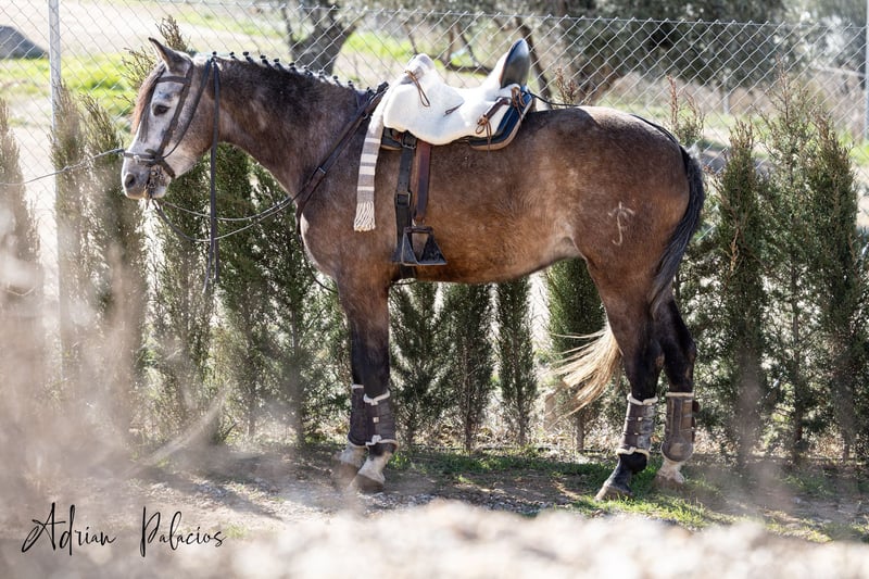 Potro hispano árabe con pasaporte. Capado, con 4 años de edad y una alzada de 1,65. Está montado a los 3 aires. Tiene muy buena base, espalda a dentro, cesiones, pasos atrás, apoyos, pirueta directa y muy fácil a las ayudas. Sacado por el campo y por el pueblo. Muy manso tanto montado como en el trato, para herrar, subir al van,… Aún le queda por hacer; es un crío, pero tiene mucho potencial. Se acepta cualquier prueba. Se vende por falta de tiempo.
