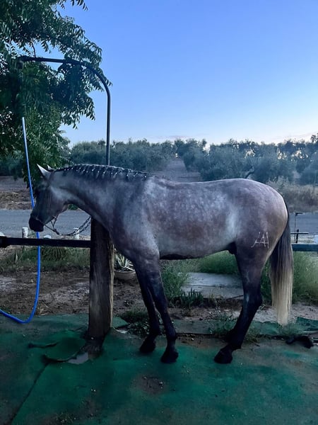 Se vende caballo hispano árabe al 40%, hace los 5 años en mayo, hijo de Embite (Rubio Marín) y yegua PRE. Talla 1,67. Doma paso, trote, galope, apoyos, cesiones a la pierna, paso atrás… Se encuentra en Córdoba Precio: 6.500€