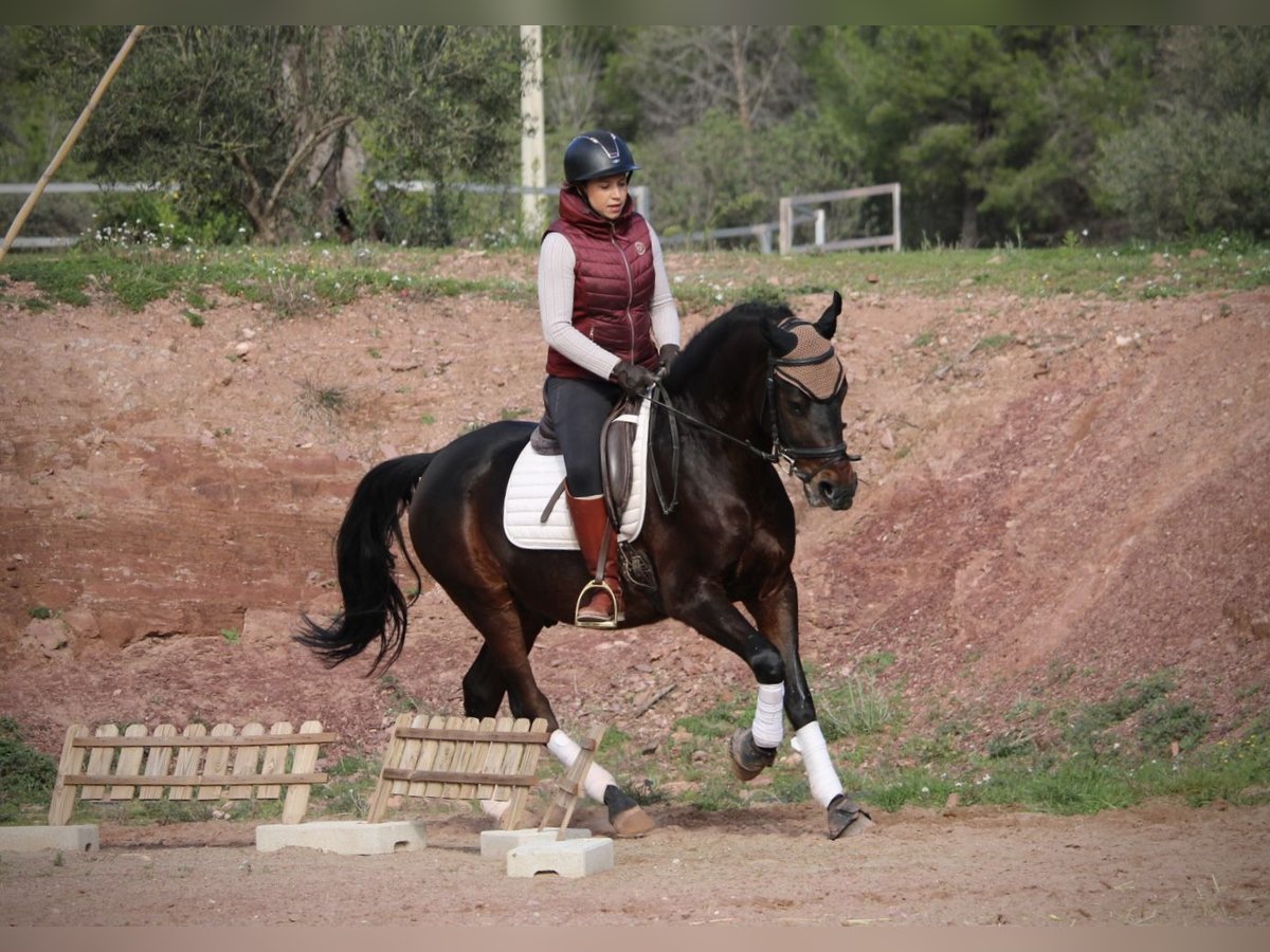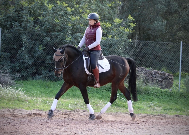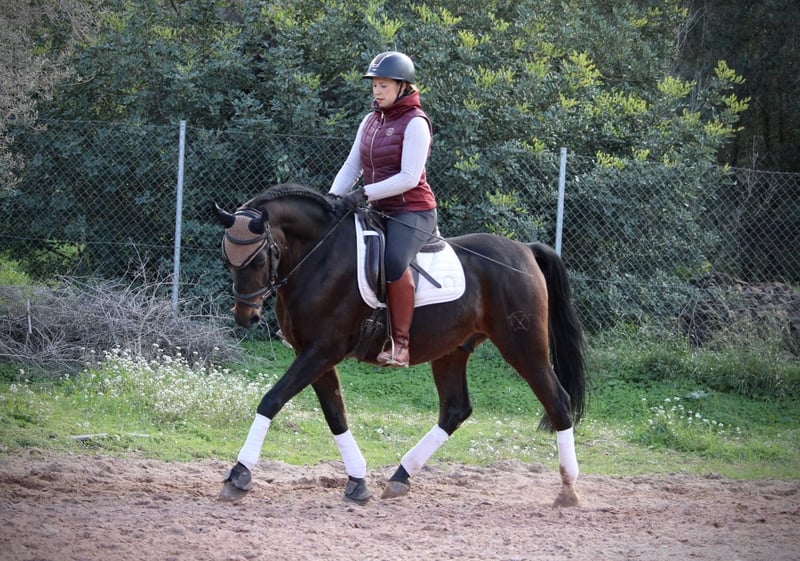 Absolutely reliable, this handsome gelding in a dark coat, both in the arena and in the field! TROYA is a loyal companion in all aspects of life, friendly, easy to ride, well-mannered, and compatible with other horses… there are hardly any positive qualities that do not apply to this wonderful gelding. Only a loving home is now missing for his big happiness! So, who would like to offer this handsome guy a great place? TROYA is correctly ridden in the basic gaits, understands shoulder-in and leg-yield, and is still being professionally trained by me. He also goes very well in a group but is equally confident when ridden alone in the terrain. TROYA is a Hispano-Arabian with a Spanish passport. Location: Valencia, Spain.