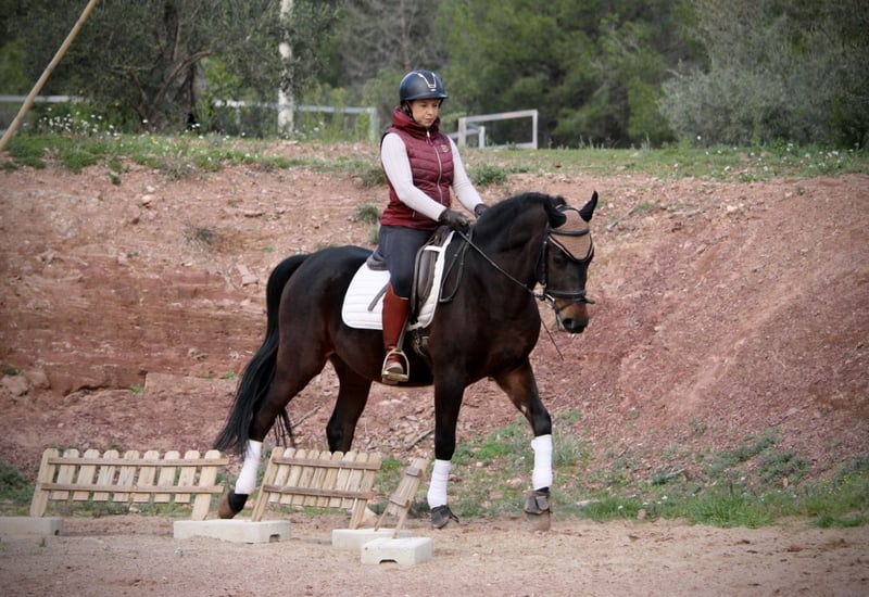 Absolument fiable en toutes circonstances, ce joli hongre en robe foncée est aussi bien sur le manège qu’en extérieur ! TROYA est un compagnon fidèle dans tous les aspects de la vie, sociable, facile à monter, bien élevé, compatible avec ses congénères… Il y a peu de qualités positives que ce merveilleux cheval ne possède pas. Il lui manque simplement un foyer idéal pour connaître son bonheur complet ! Alors, qui souhaite offrir une belle place à ce charmant cheval ? TROYA est monté correctement dans ses allures de base, maîtrise le épaules en dedans et les épaules au galop, et continue d’être entraîné de manière professionnelle par mes soins. Il se montre également très à l’aise en groupe, mais part aussi seul en balade. TROYA est un Hispano-Arabe avec un passeport espagnol. Situé à Valence, en Espagne.