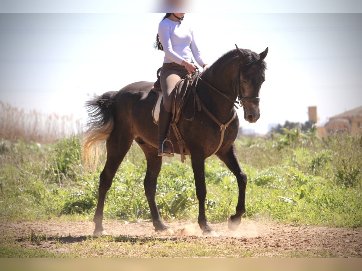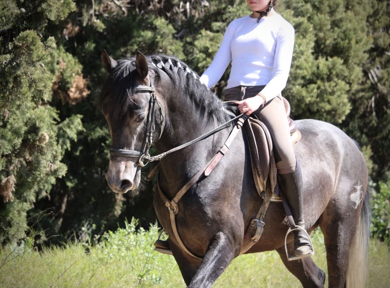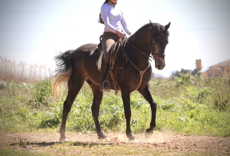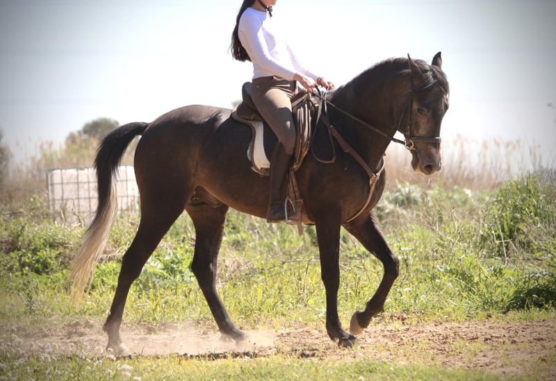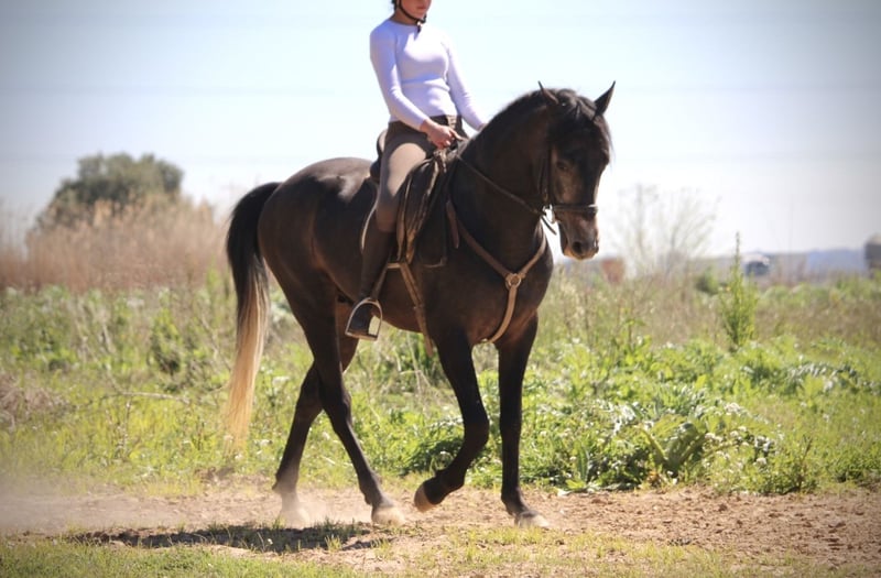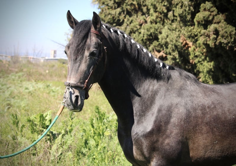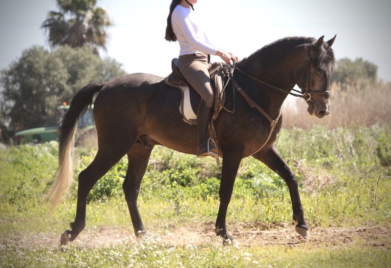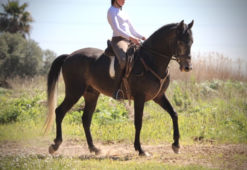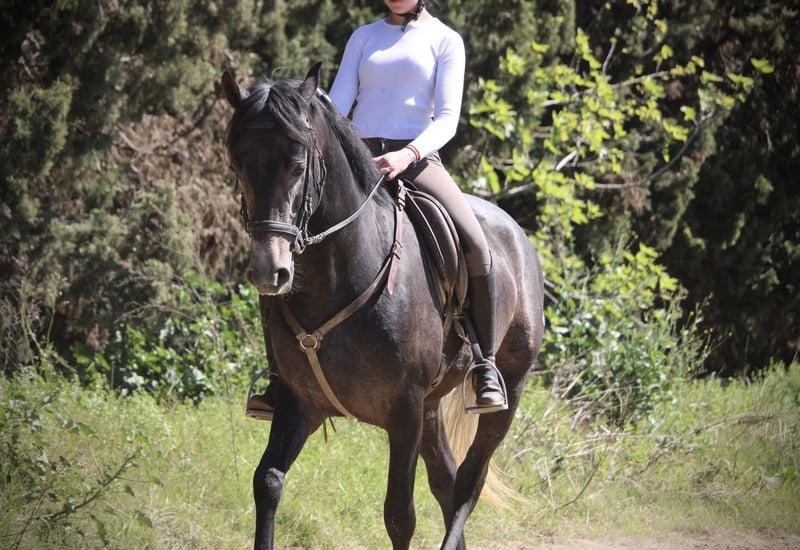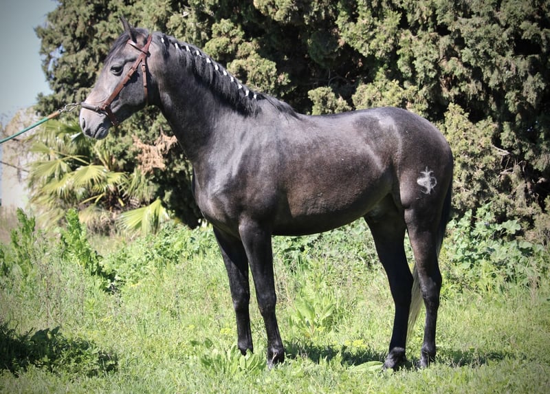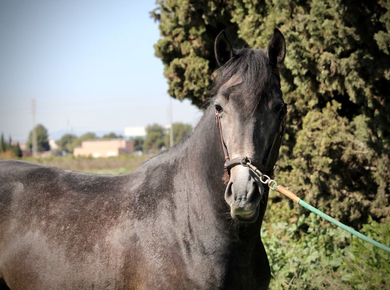 Dieser junge Hengst hat für sein junges Alter bereits so einiges zu bieten: er ist überaus gut geritten und trainiert (aus versierter Hand, die Reiterin ist spanische Vizemeisterin der Junioren in Doma Vaquera) und bereits sehr erfahren im Turnier- und Eventbereich. ENEBRO ist dabei unglaublich willig, geschickt und konzentriert bei seiner Aufgabe und wäre sicherlich ein absoluter Top-Kandidat für die Working Equitation oder auch den gehobenen Freizeitbereich. Er ist korrekt auf Wassertrense in den drei GGA geritten, beherrscht bereits Schenkelweichen und Schulterherein und Ansätze von Traversalen. Die Sportlichkeit und Ausdauer des Arabers mit dem barocken Gebäude und der Gutmütigkeit des PRE ergeben dabei eine perfekte Mischung. ENEBRO ist absolut gut erzogen und brav und auch für jüngere oder schwächere Reiter mit etwas Training problemlos zu handhaben. Gerne könnte er auch hier vor Ort noch gelegt werden, auch wenn er absolut kein hengstiges Verhalten zeigt und gut mit anderen Pferden sozialisiert ist. Da seine Kreuzung eher Spätzünder sind, wächst ENEBRO bestimmt noch 2-3cm. Frei von Schimmelmelanomen. Standort Spanien.