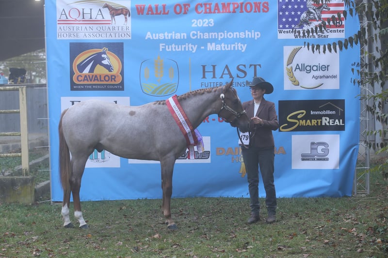 Hot Hits Only 2022 Red Roan (Overo) Hengst AQHA / APHA - doppelt registriert Von: Whatta Hit Aus der: Hot Lopin Airpower 4 Panel n/n - n/HRD - IMM n/n - OLWS n/n - EJSCA n/n Ergebnisse Farbtest: e/e A/A nd2/nd2 N/W20 Rn/n Showerfolge: Mehrfacher Klassensieger Mehrfacher Österreichischer Meister Mehrfacher Österreichischer Vize Meister Mehrfacher Futurity Champion Grand Champion Mehrfach Reserve Grand Champion Year End High Point Horse World Show Qualifier Die ersten 3 Stuten decken für €650.- (Frischsamen) Reguläre Decktaxe Frischsamen: €850.- Selbstverständlich gewähren wir eine Lebendfohlengarantie! Auch Fremdrassen sind herzlich willkommen! Weitere Infos sehr gerne telefonisch unter 0043 676 / 42 63 575 oder per Mail: mb-stallionservice@hotmail.com Zu unseren Deckhengsten zählen: Magic Bo Snapper (Palomino - Pleasure / All Around) Whatta Hit (Red Roan - Pleasure / Halter) Pocos Hollywood Ice (Champagne - Foundation) Lenas Blue Rain (Cremello - Reining / Foundation) Onelittlestepforluna (Buckskin - Reining) Whattan Exciting Hit (Chestnut -Pleasure) Hot Hits Only (Red Roan Overo - Pleasure / All Around)