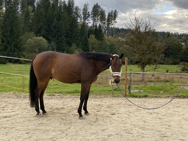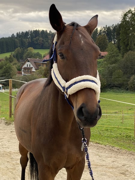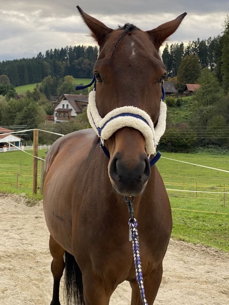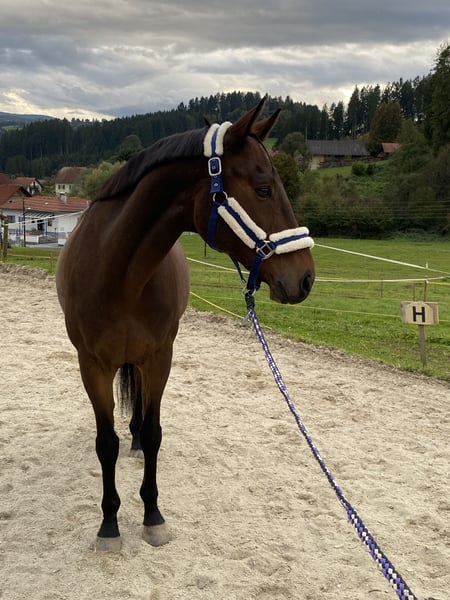 Braver, menschenbezogener und verschmuster 11 jähriger brauner Wallach mit 163 cm Stockmass. Er ist vierfach beschlagen und wurde regelmäßig geimpft und entwurmt. Die Zähne wurden im Juli 2025 zuletzt gemacht. Er wurde bei mir in der Dressur weiter gefördert und erreichte in den letzten 3 Jahren erfolgreiche Platzierungen auf Turnieren der Klasse A (schlechteste Platzierung 4. Platz). Derzeitiger Ausbildungsstand Klasse L. Er ist schmiede- und verladefromm (steigt beim ersten Anlauf in den Anhänger ein). Er geht brav und zuverlässig allein und in der Gruppe ins Gelände. Er stellt sich sehr gut auch auf schwächere Reiter ein und ging beim Vorbesitzer auch schon als Schulpferd. Wegen Mangel weit unter Wert zu verkaufen.