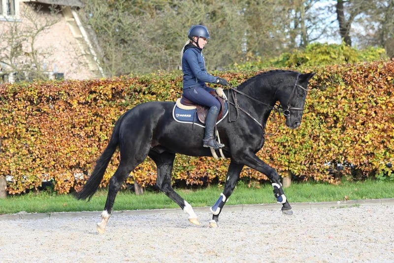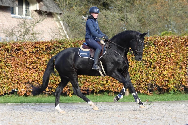 Se ofrece un impresionante caballo gelding negro, nacido en 2015. Con una altura de 1,74 m, combina fuerza, elegancia y movilidad. Zeus es muy dispuesto a trabajar, de fácil manejo y apoya al jinete en todas las situaciones. Es muy atento y confiable. Especialmente adecuado para jinetes principiantes o reincidentes. Zeus transmite una excelente sensación de equitación con su trote elástico y un trotón ascendente muy redondo. Tiene carácter fuerte y carismático, y es sumamente amigable en su trato. Formación básica sólida hasta los niveles L y M, ya iniciado en competición. Ideal tanto para jinetes ambiciosos que están empezando como para jinetes experimentados en competición que buscan un caballo confiable. La revisión veterinaria actual está sin hallazgos. Zeus está en entrenamiento, y nos reservamos el derecho a modificar el precio según el progreso. Para más información o interés, estoy a su disposición. Videos disponibles a petición, visitas y pruebas de salto previa cita.