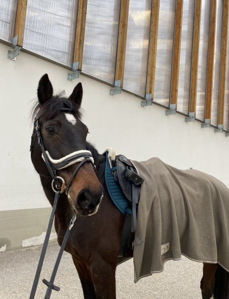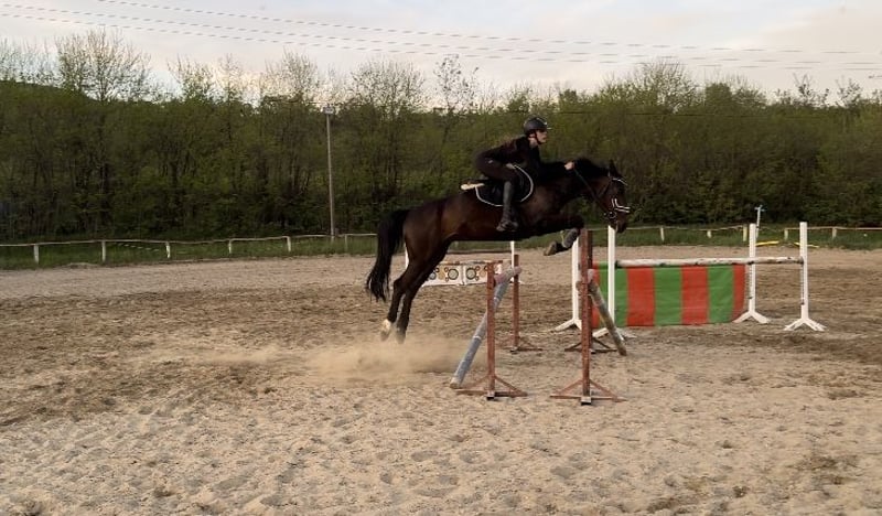 Bongó est un hongre hongrois de 12 ans. Il a concouru jusqu'à 110 cm avec un amateur et a la capacité de participer à des parcours plus élevés. Il n'est pas regardant, ne s'arrête pas et n'aime pas frapper, il accepte les sauts même à partir de mauvaises distances, il est serviable. Il connaît les exercices de base de dressage (changement de saut, mise en arrière, mise en avant, etc.). Il peut sortir seul ou en groupe en extérieur. Je ne le recommande pas pour les débutants en raison de son tempérament. Il est en travail continu sur le plat et en saut, et peut être vu et essayé sur l'île de Szentendre. Ses résultats peuvent être consultés sur dijugratas.hu. Je peux envoyer d'autres vidéos et photos par WhatsApp.