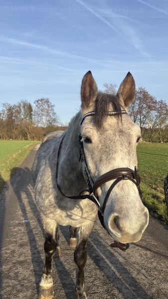 Verkaufsanzeige Mischlingswallach Silver** Zum Verkauf steht mein Mischlingswallach Silver mit einem Stockmaß von ca. 150 cm. Silver ist roh und noch nicht eingeritten, daher eignet er sich für erfahrene Pferdemenschen, die Freude an der weiteren Ausbildung haben. Silver ist ein sensibles und ehrliches Pferd, das etwas Zeit braucht, um Vertrauen zu fassen. Hat man jedoch sein Herz gewonnen, zeigt er sich sehr verschmust und anhänglich. Im Umgang ist er ruhig, aufmerksam und neugierig. Halfter und Führen kennt er, ebenso den Alltag im Stall und auf der Weide. Silver bringt viel Potenzial als zukünftiges Freizeitpferd mit und sucht einen Menschen mit Geduld, Ruhe und Herz. Weitere Informationen, Bilder oder ein Kennenlernen gerne auf Anfrage.