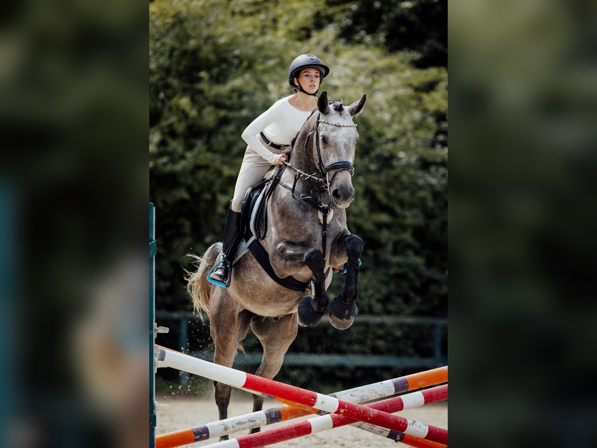 Grauer Wallach, ca. 167 cm, vielversprechende Abstammung. Ehrlich, mutig und einfach im Umgang. Ausbalancierte, rhythmische Grundgangarten mit großem Potenzial unter dem Sattel. Sehr menschenbezogen, mag die Interaktion, ist an allem interessiert wie ein Baby. Springt seit dem Sommer, kleine Parcours absolviert, ehrlicher, kraftvoller Sprung mit Vermögen für den Springsport. Im täglichen Umgang unkompliziert: Verladen, Hufschmied, Waschen. Röntgenbilder vorhanden. 📍 München WhatsApp: +49 152 31434794