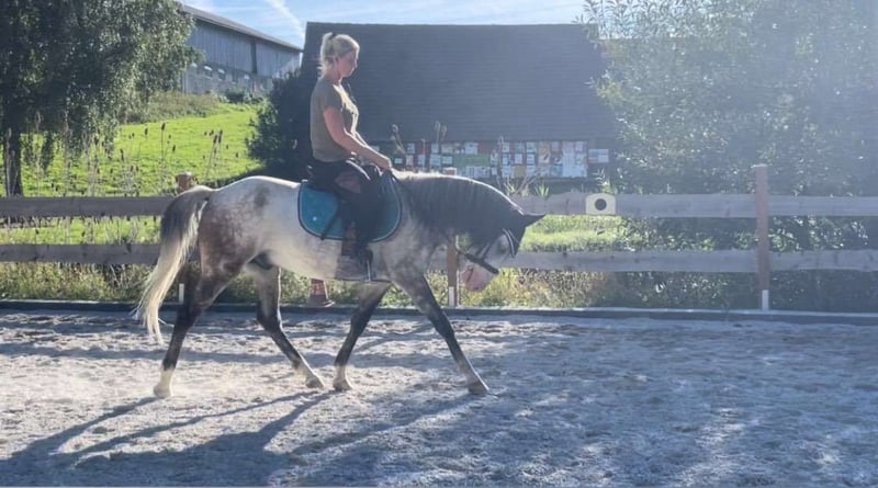 Eyecatcher Sportpony *Ruinen *6 jaar *150 cm *gemengde kudde *voorzijde beslagen *2 blauwe ogen *Dressuur tot A *Springen begonnen tot 80 cm *Terrein 100% in groep en alleen *Stal//Paddock//Open stal gewend *Hoefsmid en laden geen probleem * Video's beschikbaar graag via Whatsapp Silver Blue loopt regelmatig in het schoolbedrijf, zowel in groeps- als individuele lessen. Verschillende ruiters gewend. Ook als longeerpferd al actief. Verkoopreden: We verminderen de schoolactiviteiten, aangezien het schoolbedrijf op korte termijn zal worden stopgezet.