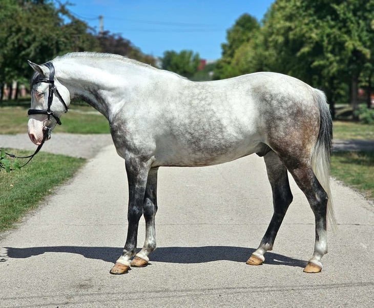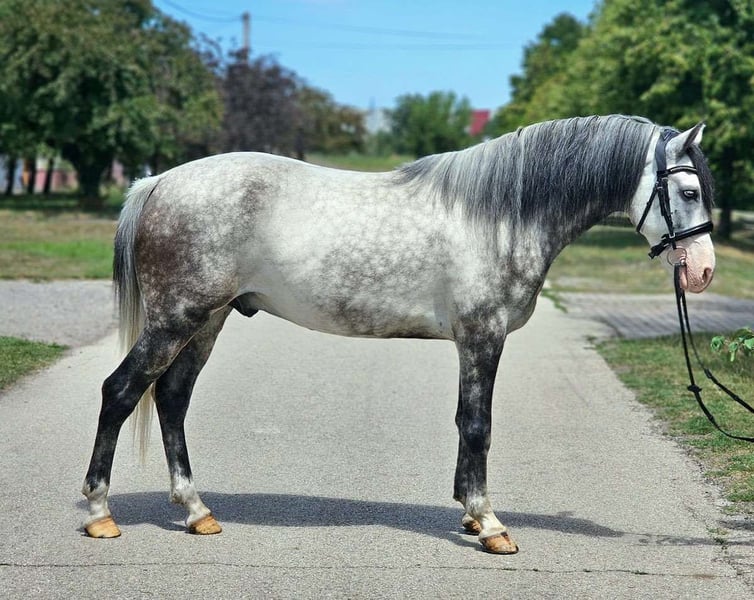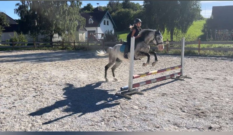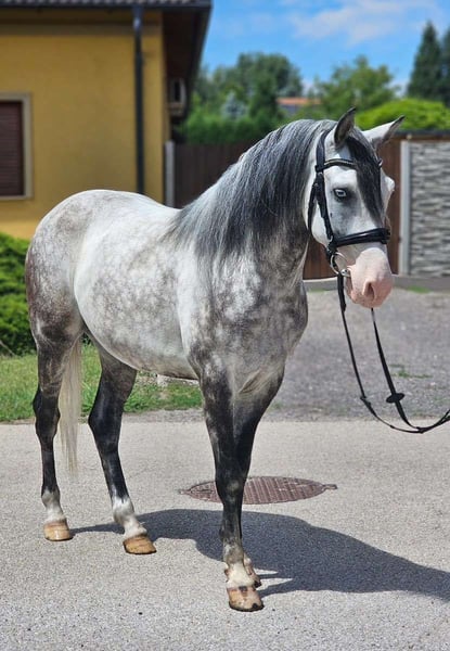 Eye-Catcher Sport Pony *Gelding *6 years *150 cm *Mixed herd *Front shod *2 blue eyes *Dressage up to A level *Jumping started up to 80 cm *Trail riding 100% in groups and alone *Used to box/paddock/open stable *Farrier and loading are no problem *Videos available via WhatsApp Silver Blue regularly participates in school operations for both group and individual lessons. Used to various riders. Also active as a lunge horse. Reason for sale: We are reducing the school operation, as the riding school will be closing in the foreseeable future.